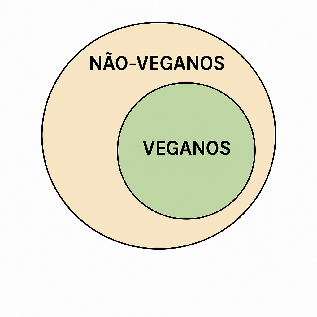 Esse é um diagrama de Venn que mostra, de forma bastante didática, a relação entre o que comem veganos e não-veganos. Um menu à base de plantas não exclui ninguém, exclui? Já um com ingredientes de origem animal…