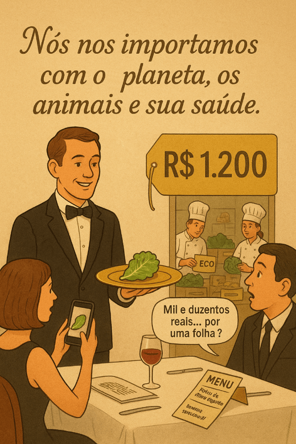 O fine dining vegano, ao cobrar preços exorbitantes, tira o foco da ética e transforma o veganismo em um produto de luxo para uma elite. O cinismo está em usar a bandeira da “compaixão” e “sustentabilidade” para justificar um preço que é, em si, um símbolo de exclusividade e status social. Como um movimento que prega a justiça pode ser tão exclusivo?
