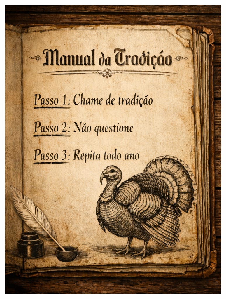 Essa época do ano é uma das mais comuns pra gente ouvir o bom e velho argumento do “é tradição”. Falar sobre veganismo perto do Natal é pedir para ouvir sobre a importância do peru na ceia, assim como ouvimos sobre o porco no Ano Novo, o cordeiro na Páscoa, o churrasco de domingo, ou a feijoada “raiz”. Todos esses costumes costumam ser defendidos não pelo seu significado ético, nem pela necessidade, mas por uma frase simples e poderosa: sempre foi assim.
